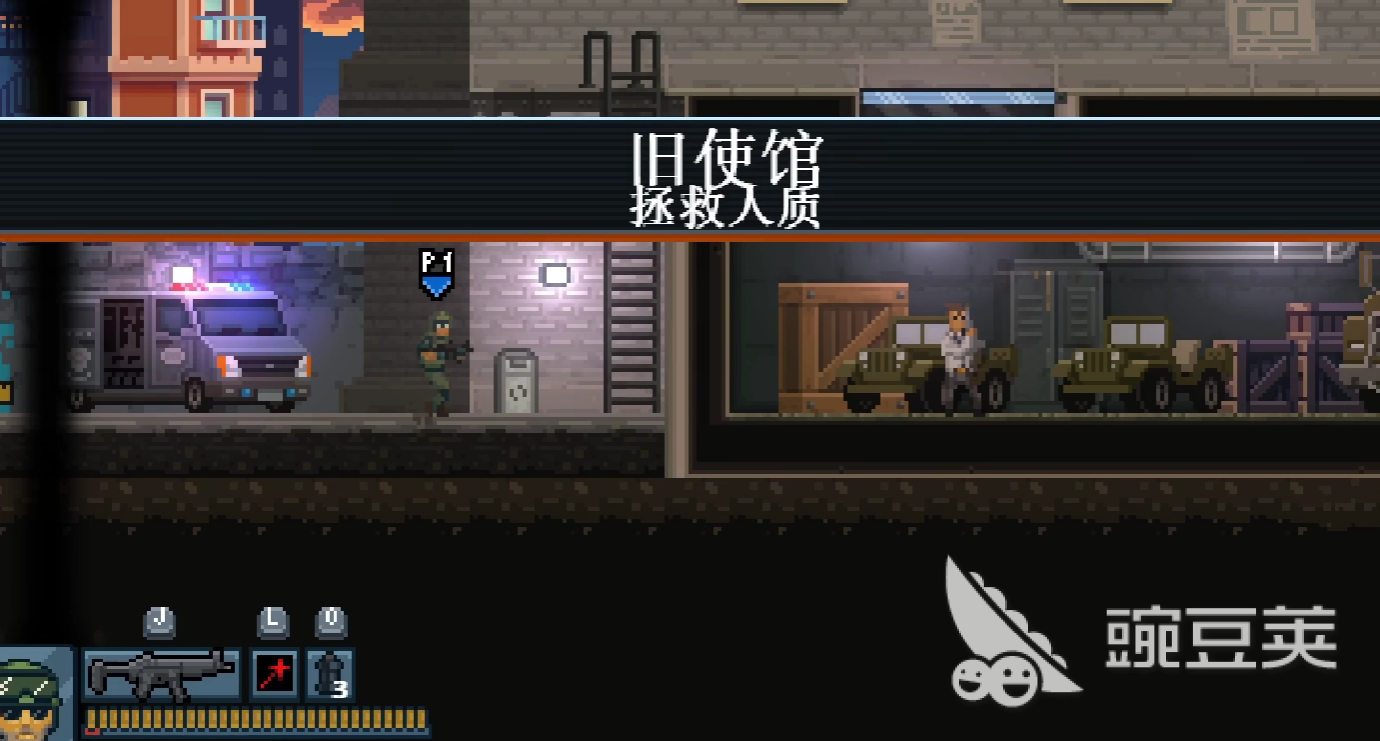 4-3关卡内,玩家需要绕道通行,这样才能够高效率的清理敌军,在4-3关卡的最上方平台处,玩家还可以使用霰弹枪对下方进行突袭,直接通过破门的方式,营救人质的同时,击杀敌人。