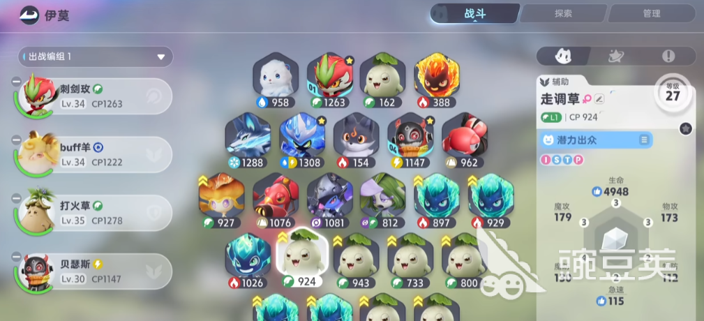 围绕这个角色作为核心的话,大家还可以搭配另外一个宠物是走调草,这是前期有很多玩家都可以用的一个宠物,它的普通特性可以带来一个威慑的能力,而且每隔15秒就可以对一个目标造成伤害,此时被击中的这个敌人就会进入虚弱状态当中,此时对面给我方造成的伤害数值也会降低15%,且这样的能力都会持续20秒的时间,所以相对来说如果大家输出足够的话,20秒的时间足够完成整个战斗,如果是稀有特性更强的话,那么后期还可以降低敌方的输出以及防御数值,所以如果整体队伍有这两个宠物,再搭配上一些暴击快速清理的话能力是完全没有问题的,而且它的效果后期还可以被全队共享,所以说实用性是非常高的。
