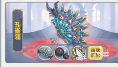 其中,有孔雀翎,唐门顶级暗器,造型绚丽夺目,形状如同扇子,翎羽展翅间能够释放出多种钢针,诛杀目标如神灵裁诀,拥有属性,能使全队最终攻击增加10%,星级达到0-5级时,第二回合,开始以30%的概率发射35-45枚钢针,每枚钢针能造成最大生命7%的暗器损伤,适合离敌方相远的地方攻击,使用孔雀翎时,数支钢针同时发出,能使敌方不停受击,应接不暇,消耗生命力,即使,敌方反抗攻击,也是不停的受击,在开战中,只要合理地使用,就能对敌方起到消耗性的攻击。在整体队伍对战中孔雀翎,是首选的暗器,有孔雀翎和没有孔雀翎完全是两种体验。
