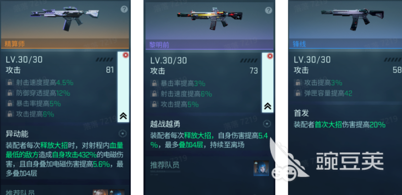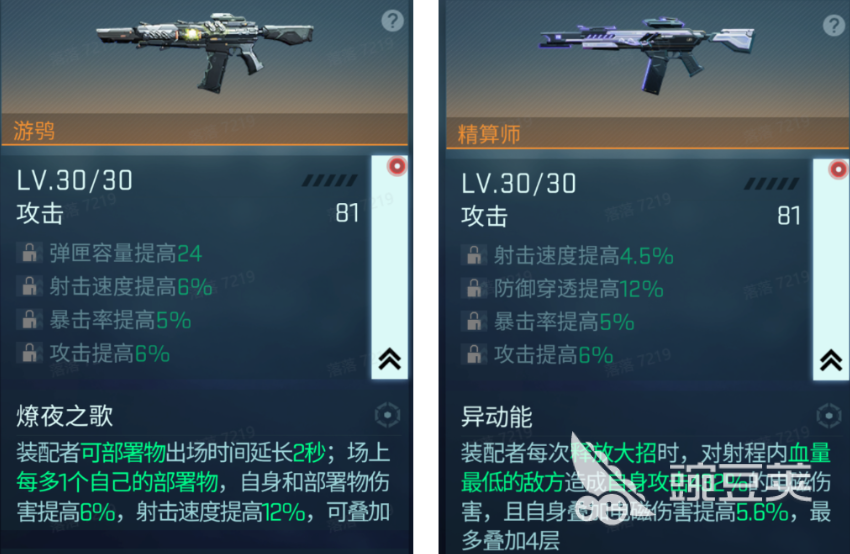 而比较优秀的两个SSR级的武器游鸮和精算师就是两个很不错的输出武器,前者拥有着燎夜之歌的专属能力,被装配后的角色可以使可部署物的出场时间延长2秒,并且在战斗场景中多出一个自己的部署,本身和部署物的伤害都提高6%,射击速度提高12%,并且此状态可叠加;而后者则是有异动能的效果,装配的角色在每次释放大招的时候都可以对射程范围内最低血量的敌方造成高达432%的自身电磁攻击伤害,而自身在叠加到电磁伤害后会提高5.6%,最高可以叠到四层,而有更多其他的装配解锁之后,游鸮和精算师都会拥有着更高的能力以及输出。