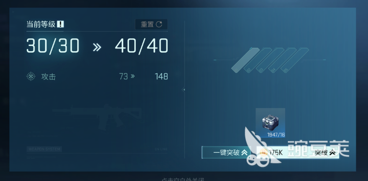 除了对于枪支的一些基础属性要了解,那么对于武器的专属养成,玩家们也不能错过,武器的养成升级是可以突破的,而当他的等级分别到30级,40级,50级,60级,70级的时候,都可以进行突破,例如对当指挥官的角色等级达到35级的时候,武器如果没有突破,那么它将会一直长期停滞在三十级,而将其突破之后,不仅提高了武器的升级上限,还有更多的配件也解锁了,而每一个配件解锁出来的条件也需要玩家们点进去自行查看,这些都是为了进一步提高武器的输出。