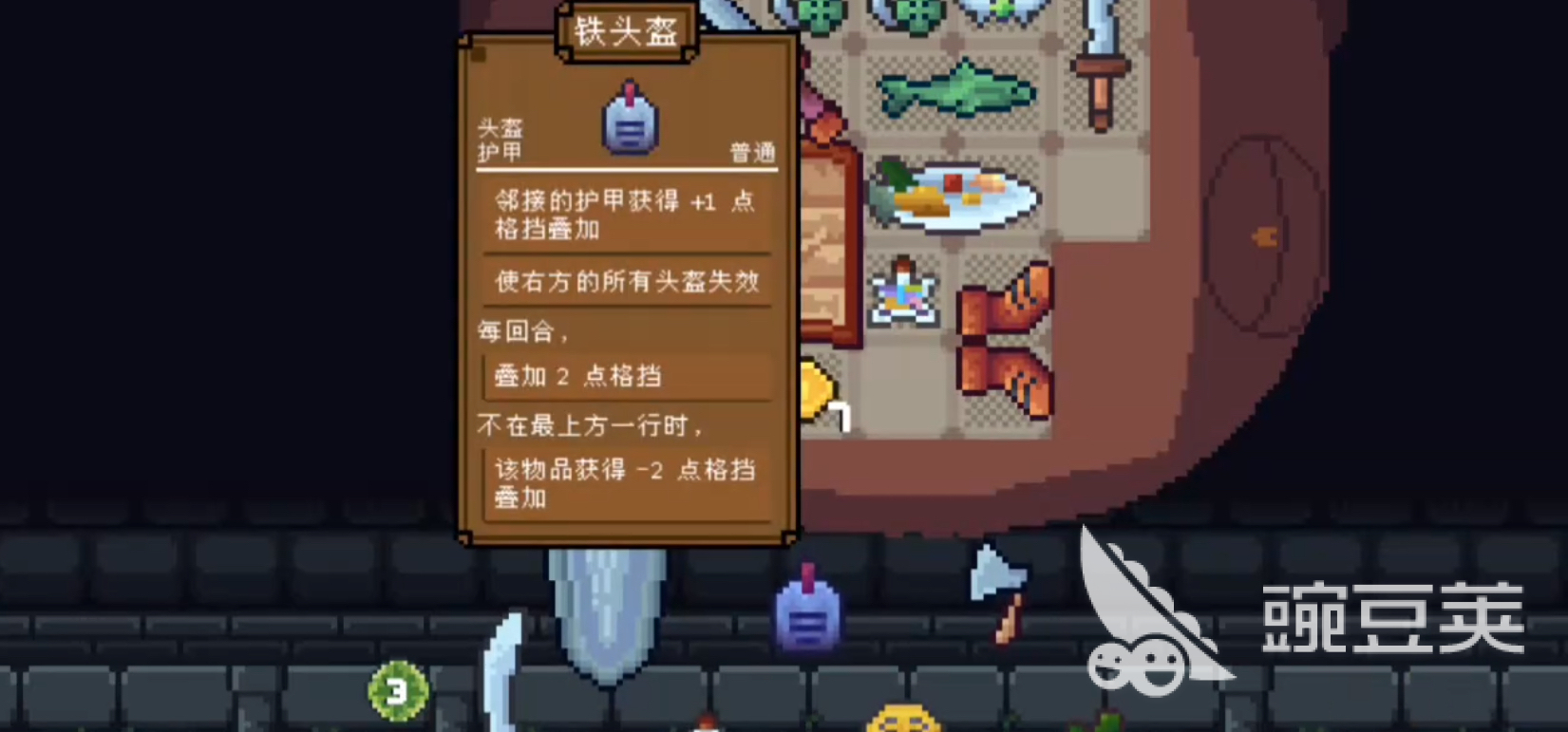 在游戏前期,优先选择具备防御能力的装备能有效提高生存率。铁头盔是初期较为实用的选择之一,其使用方式为将其置于护甲相邻的位置,即可获得1点格挡值加成。此外,该装备还能使位于其右侧的所有头盔类物品失效,每回合稳定提供2点格挡效果。若条件允许,可升级为带刺头盔,除具备相同的失效机制外,还可叠加4点刺甲属性,进一步增强反伤能力。