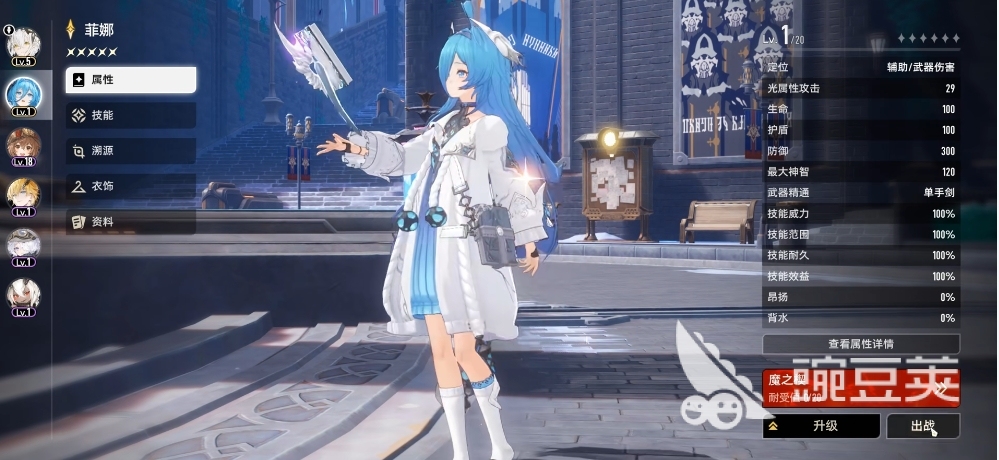 第四个为大家推荐就是菲娜这个角色,菲娜目前在游戏当中是属于一个五星角色,所以品质上面是非常高的。在使用菲娜的时候,她在武器上面有一个非常好的特点,就是可以进行切换,不管是使用巨剑类型的武器还是弓箭类型的武器,她自由切换之后就可以带来不同阶段的攻击方式,所以在远程以及近程的输出上面是比较灵活的,而根据属性带来的能力上面基本都是冰系的效果,还可以在召唤队里面得到足够的召唤伙伴协助输出,所以在整体的增新效果上面她也是非常强的,建议大家可以把她放在各类阵容当中进行使用。