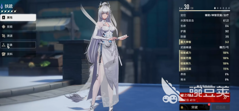 第三个为大家推荐的就是扶疏,之前为大家介绍过这类辅助角色里面的扶疏是非常出名的,而且她在团队里面是可以给全队成员都带来大范围提升能力的基础上,带来的数值都可以达到15%的生值恢复,然后后期再延长时间达到更久的技能影响时间,也是有相应技能可以让队伍续航达到足够的延长效果,那么在队伍续航没有压力的情况下,对面进行偷袭的话,大家也可以利用她的技能进行一个反手送杀的效果,她在完成反杀之后,其实整体的能力都是比较适应于一些高端局效果的。
