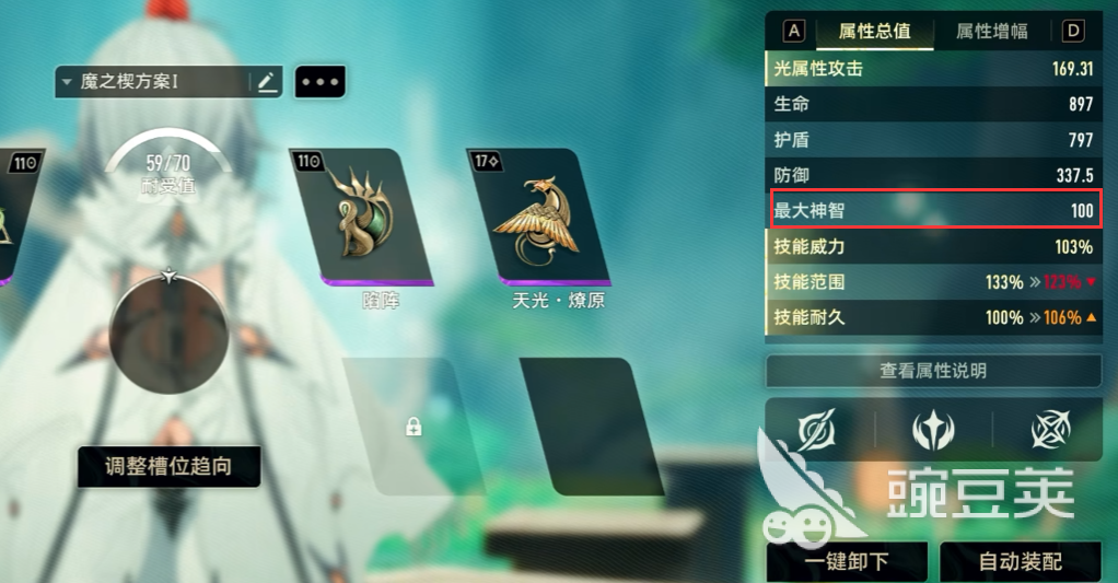 魔之楔的选择方面,左右位可以搭配幻景同属性的魔之楔,同时,提升自身的最大神智,例如天光燎原、陷阵等等,并且,所有近战单位的神智型魔之楔,以及技能威力型魔之楔,都能够成功搭配给幻景。