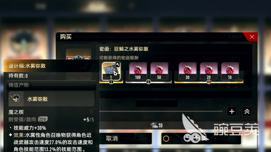 幻景魔之楔的毕业套装是“水雾弥散”,能够直接增加技能威力30%,同时,切换武器时,还能够提升输出倍率,是游戏内加成比较高的一个魔之楔了,但是该魔之楔需要通过密函任务来获取,随后收集材料进行打造。