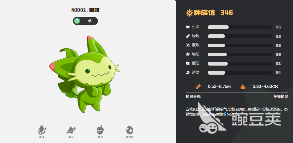 第二个喵喵的话,它是草属性当中的一个精灵,这个精灵主要用处是放在生存上面,大家使用喵喵的话,它的效果基本是定位在半肉型上面,因为本身的血量数值是非常高的,所以拥有一定的持续作战特性,在定位效果上面,它有一个优势就是带有一定的循环效果,喵喵在释放自己技能的时候还可以给自己带来生命值恢复能力,但是这里恢复的话,会根据它的最大生命值的数值来进行提取,提取到15%的数值才给他进行恢复,所以这里喵喵原本的生命数值越高的情况下,达成的恢复就会数值越高。