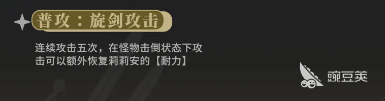 而且此时的话,她也是进入了一个高频连击的节奏当中,带来的整体效果也是提升整体的伤害频率,而且这个状态如果攻击的是倒地状态当中的敌人,那么在耐力恢复。的数值上面会比基础的输出带来的回复数值更高一些,她在技能1上面有一个除恶务尽的效果,带来的是一个技能输出效果,但是也是有大范围能力的,在此时她会对前方一定范围内的敌人带来足够的挥砍能力,此时造成了伤害之后,还可以额外触发一次终结的大招效果。