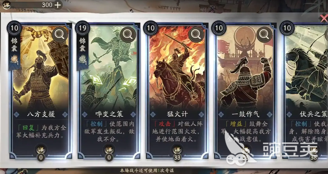 在锦囊的搭配方面,玩家可以直接使用一鼓作气,直接鼓舞全军士气,提升战意素质,亦或是使用伏兵之策,增加伤害效果。