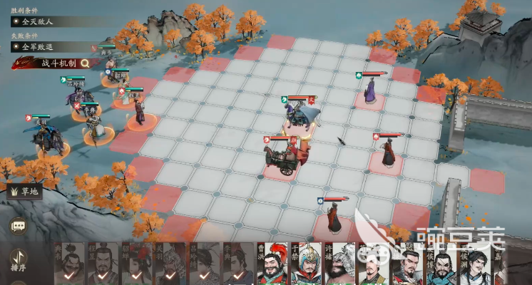 目前在通关组合的选择上,建议选择典韦、程昱、貂蝉、关羽、吕玲绮、李典,玩家可以利用五连棋规则,冲刺战场,完成开局魔法的效果,派出吕玲绮直接走到文丑位置,放出一个群攻,从而降低文丑的辅助攻击,接下来再利用五连棋打完再移动至敌方沮授身后,这样可以将吕玲绮放入到安全位置。