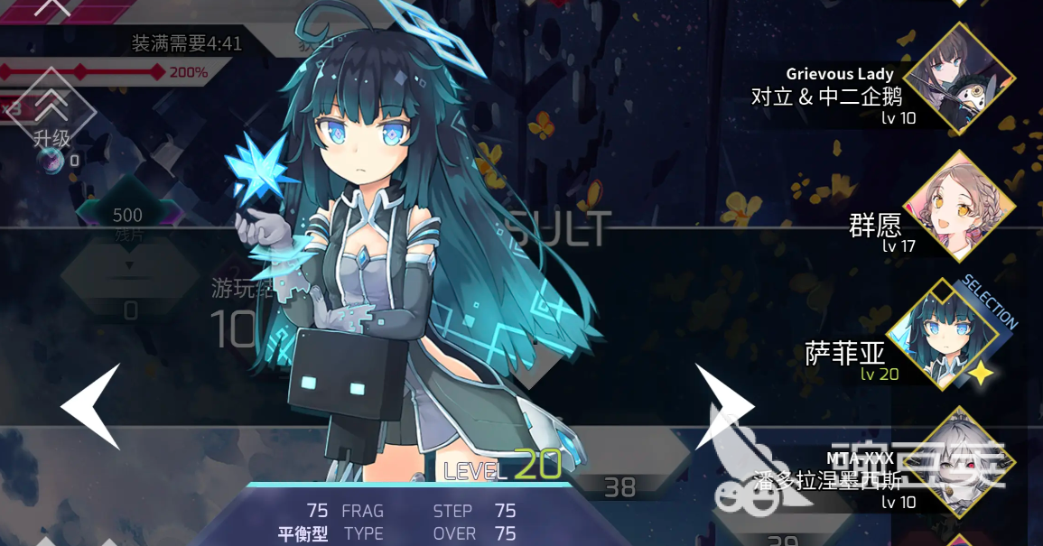 第四个给大家推荐的叫做萨菲亚,萨菲亚在游戏当中很多玩家会叫她小蓝,因为她在头发跟服饰设计上面有一些蓝色元素的,她在形象外面上是看起来非常乖巧可爱的,在游戏当中她也有专属的曲包,通过Dynamix Collaboration这个专属曲包,大家可以购买获取这个角色,那么在初始属性上面,其实蓝她是比较均衡的,很多后期很多玩家认为没有升级的话,那么整体数值可能是没有太多用处,但是这个角色在特殊技能效果上面,可以跟实战里面带来足够的一些免疫效果,所以如果大家对于自己的操作不太有信心的话,其实蓝这个角色还是非常适合大家去体验的。
