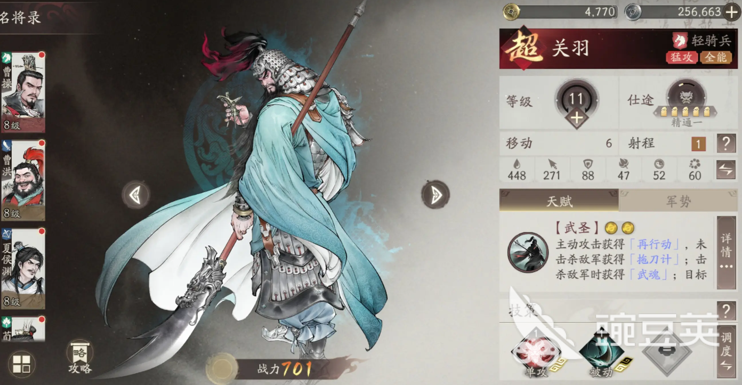 由于该技能效果,周仓是关羽最适配的一名副将,关羽本身的在行动效果会让增益buff锐减,但周仓所带来的持续增益时间状态,可以让关羽自身的增益效果发挥得更为出色。