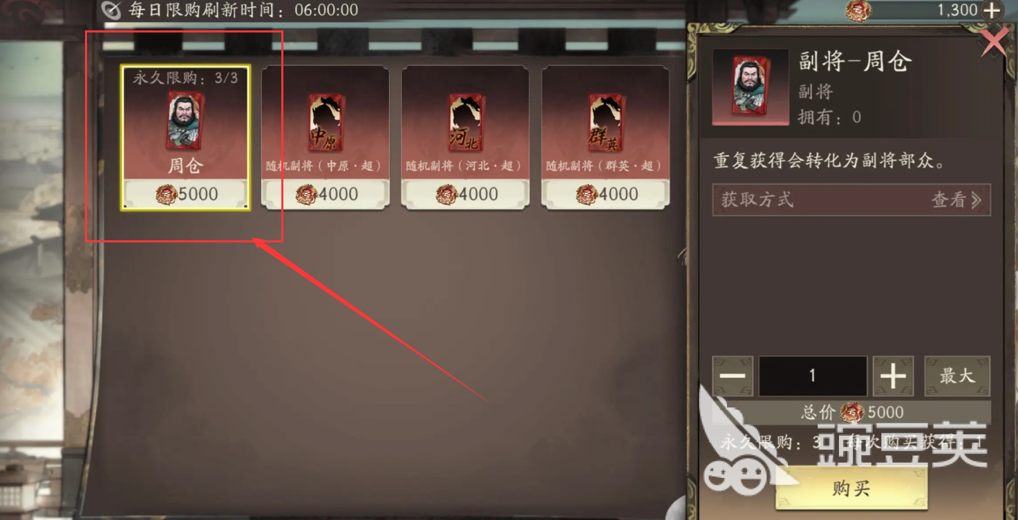 第三个方案是,玩家直接在游戏的商城内兑换,玩家使用五千枚副将碎片,即可直接兑换一个周仓,同时,在该商店内,可以兑换三个周仓单位,用于强化角色。