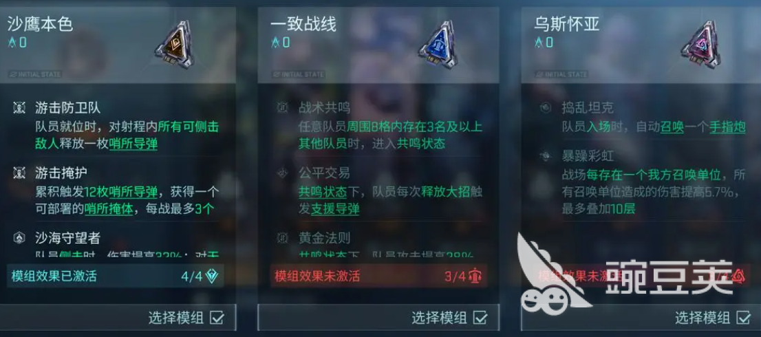 模组的激活条件是理解属性加成Buff的关键,每个编队只能配置一枚模组,而且必须保证队伍中拥有足够数量的与模组标签匹配的角色。例如一枚沙鹰模组,队伍中至少要有四名带有沙鹰标签的角色,少一人都无法激活,玩家在组建队伍时可以点击模组图标查看所需人数,优先将符合条件的角色加入队伍,确保基础Buff顺利生效。对于新手来说,首选沙鹰模组是最佳策略,前期送的沙鹰角色数量较多,激活门槛低,可以快速体验Buff效果。