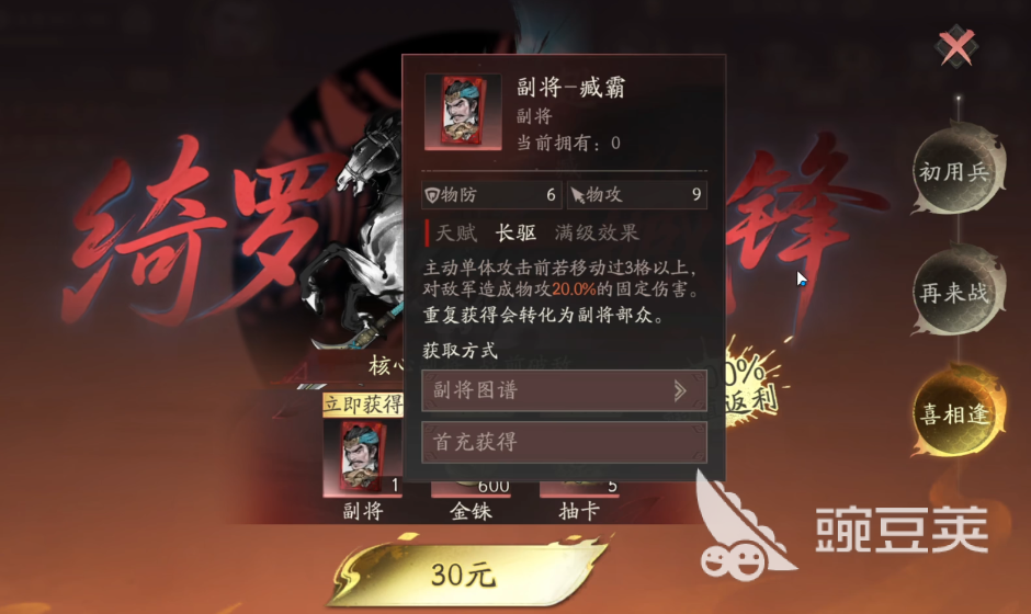 玩家可通过副将卡池抽取获得臧霸,也可通过拜访系统逐步提升好感度来解锁该角色。此外,付费获取是一种更为高效的途径。值得一提的是,臧霸常与吕玲绮组合使用,虽然后者为女性武将,但在推进主线关卡时,两人配合可显著提升推图效率。若玩家愿意进行适度充值,此方式值得推荐。