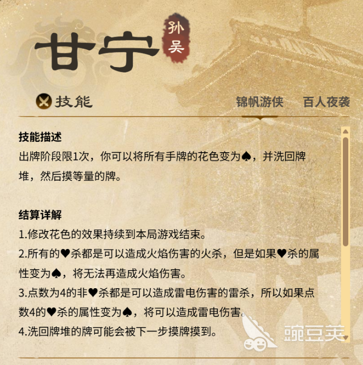 尽管甘宁表面上仅拥有一个主动型技能,但该技能内部包含多重规则变化,涉及手牌花色重置、属性转换以及后续连锁效应等多个层面。这使得他在实战中不仅仅是输出型角色,更是一位能通过操控牌堆趋势来主导节奏的战略型人物。