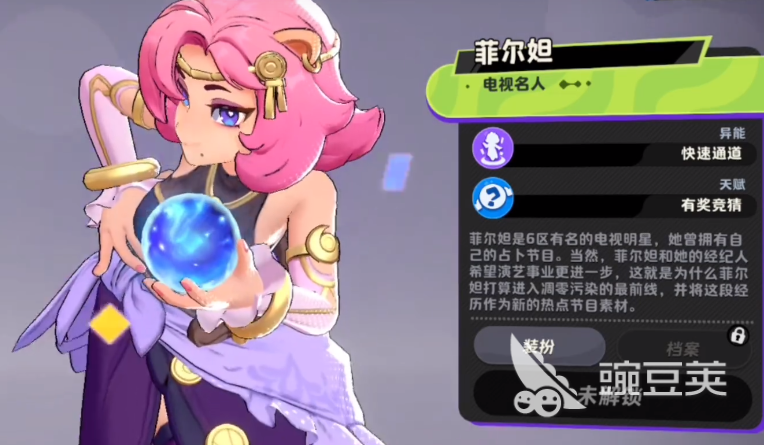 菲尔妲作为电视名人,整个角色的外观是比较优秀的,在对战的过程中可以作为远程消耗输出,每次攻击的时候都会用随身的占卜球,在设定上和灵媒亚萨莉比较相似,但这个角色会用灵魂之力干扰战场,除了远程舒适之外,还会带有一定的控制效果。