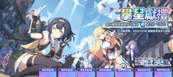 除了这一些奖励之外,玩家还可以获得攀星献礼的福利。一旦在提升权限等级之后,那就可以额外的领取12,600个星之砂,从二级到15级每提升几级就可以直接获取1800个星之砂,在全部积攒之后,那自然就可以用来抽卡,又或者是养成角色,全部都是比较划算的。要是参与幸运寻宝铲活动,在完成任务之后还可以获得积分。甚至还可以通过兑换的方法获得一些实用性的礼物,例如真格拥冠礼盒这些实用道具,这些相当于白给资源确实别错过。