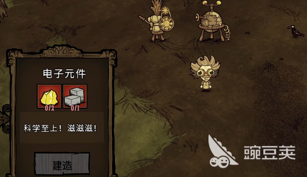 电子元件需通过科学机器来进行制作,各位可先收集1金块4石头和4木头来将科学机器制作出来并布置在地面上,这样自己就能在它附近去合出电子元件了。要注意科学机器存在着效果范围,倘若各位所选的人物不是科学家,那么只有在科学机器的生效范围内才能进行电子元件的首次制作。此外,当各位完成了一次电子元件的制作后,就能立刻解锁它的配方,往后就可脱离科学机器去进行制作。