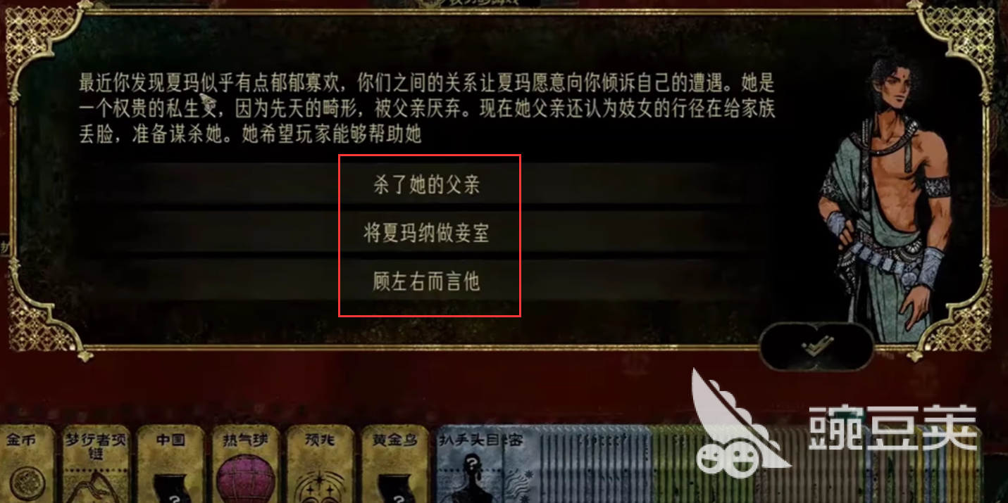 第三条路线是葬礼事件路线,玩家可以选择“顾左右而言他”,随后触发夏玛进入苏丹后宫的路线,在三到五天后,则会直接进入到葬礼事件夏玛意外死亡,玩家的权威值会下降。