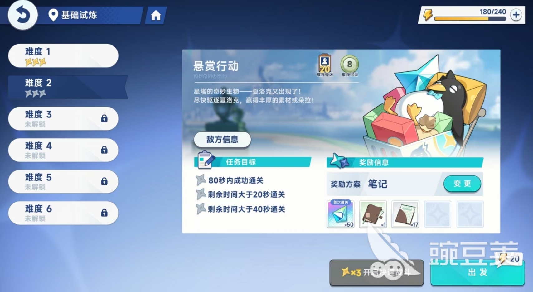 此作中的角色等级会直接影响角色的战力,玩家可消耗旅人入门手册等道具来完成角色等的提升,并且各角色在升级到等级的上限后,需通过进阶才能解锁新的上限。进阶同样需要消耗进阶道具来能完成,不同类型的角色所需消耗的进阶道具也完全不一样,各位可在试炼中找到刷取旅人入门手册的悬赏行动副本,以及各类型角色对应的进阶副本,来完成消耗道具的刷取,每次刷取都需消耗体力,当副本满足三星过关的条件后,可直接通过扫荡来获取奖励,无需再进行战斗。
