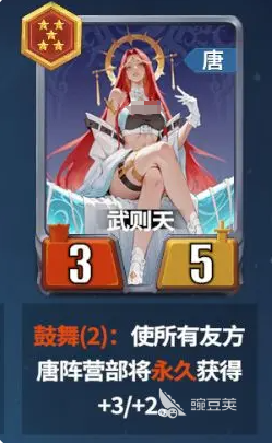 在搭配阵容时,就有一些卡牌必须要拿,第1个就是武则天,鼓舞效果可以让全队的阵营永久值加上二,越多则越强势,是一个提升全队属性的关键。另外还需要李白在攻击之前就可以召唤自带突袭效果,还可以直接打出伤害。发育好的李白就可以直接单刷相柳,但是要带一个有不屈的卡牌。另外还需要注重于杨玉环,这就是禁军的召唤器,可以有效提供稳定的攻击频率。上官婉儿也需要放在阵容中,可以随机获得唐阵营的部将,可以迅速的凑齐阵容。