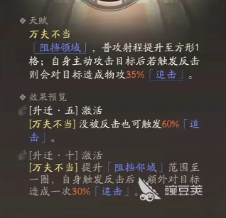 折冲和御敌这两种状态,典韦还能够轻松的进行切换和驾驭,这种状态时,提升对敌人的伤害,并且还能够加速对敌人攻击时的速度,在任何的输出场景中都是非常适用这一技能的。而御敌状态则是可以提升自身对敌人伤害的免伤效果,并且全队成员都可分摊他的这一技能,整个团队在生存能力方面是无可挑剔的。