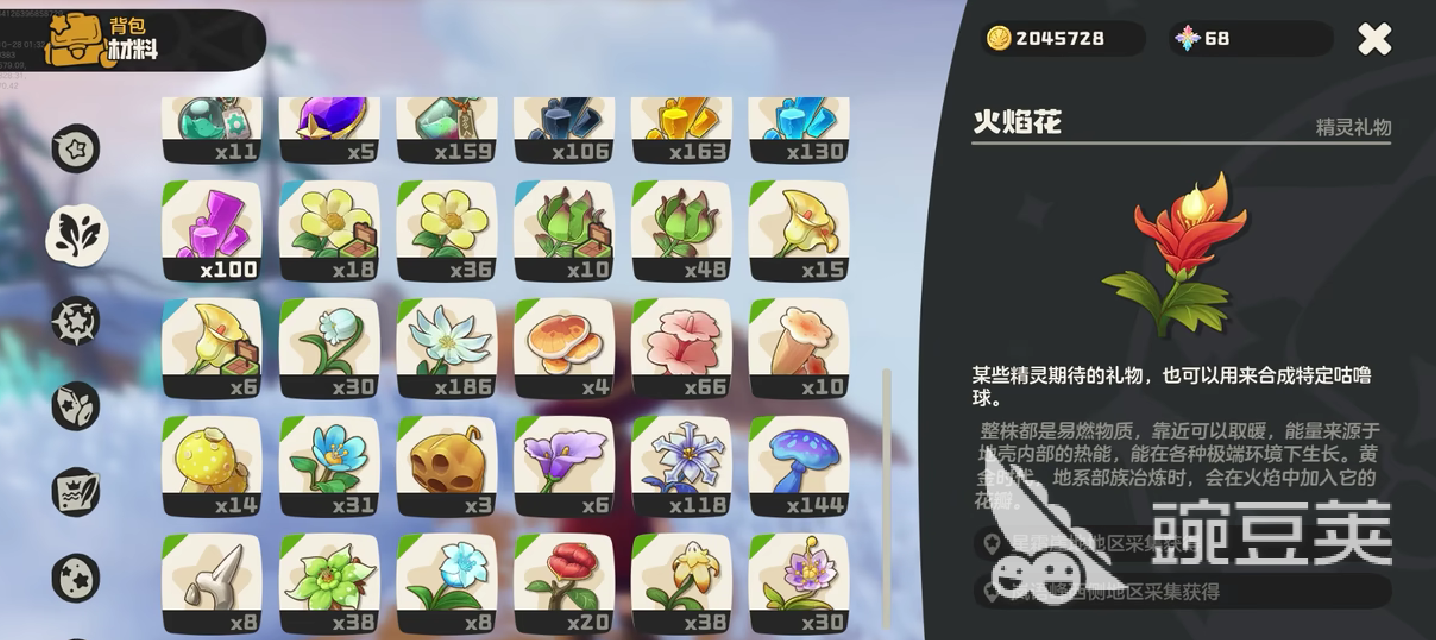 火焰花:跟星霜花其实差不多,主要共存在岚语峰西侧,不过它对温度会有一定的要求,所以说玩家直接选择正午刷持就可以。为了能够有效的提高获得的成功率,建议玩家直接选择火系的宠物,这样的话能够有效的加速采集。另外玩家还需要注意,高温其实可能会导致它的枯萎情况形成,所以玩家在这里也要重视。