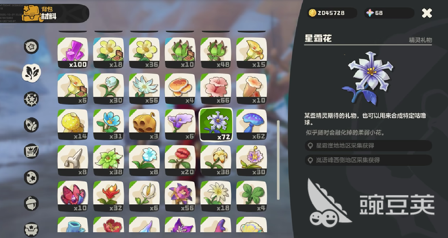 星霜花:对于环境温度是特别敏感的,所以说玩家想要获取星霜花的时候,可以选择正午或者是夜里面去刷取。玩家在刷取星霜花的时候直接去雪山地区或者是海拔比较高的地方,像岚语峰西侧这个其实是比较固定的可以获得。星霜花的地方,不过玩家如果说想要获取星霜花的时候,自己也要注意,需要携带耐寒的宠物,才能够有效的提高获取的概率。