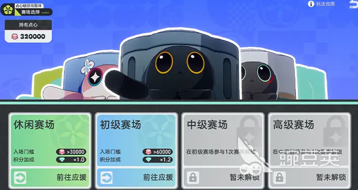 活动共设四个难度层级:休闲赛场、初级赛场、中级赛场与高级赛场。随着赛场等级提升,入场所需的“蹦蹦点心”数量也随之增加,但相应的观赛积分回报更为丰厚。玩家可根据自身资源储备灵活选择合适的赛场参与应援。同时,累计获取的观赛积分可用于兑换限定奖励。