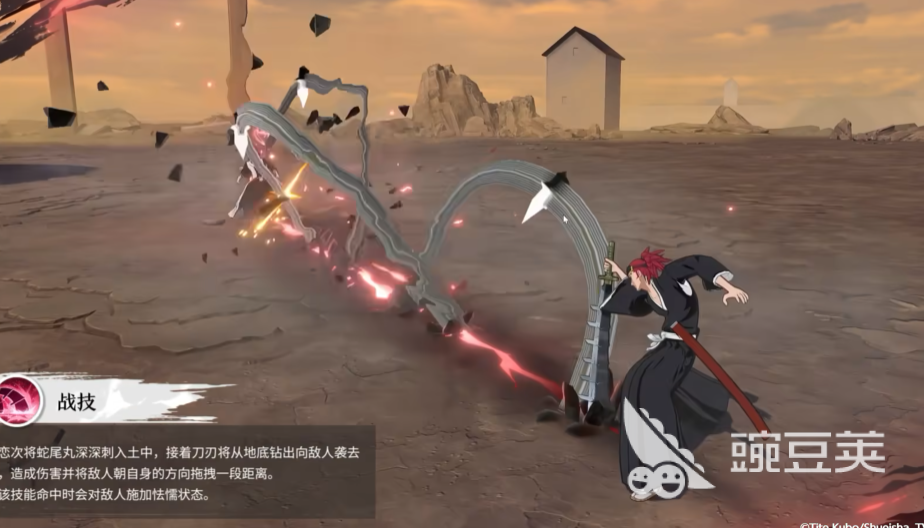 恋次降蛇尾丸深深的刺入土中,接着刺入土中的刀刃将会直接从地底下钻出来并且朝着敌人袭击,造成伤害的同时还能将敌人朝着自身的方向给拖拽一段距离,该技能一旦命中对手也能附加上怯懦的状态。