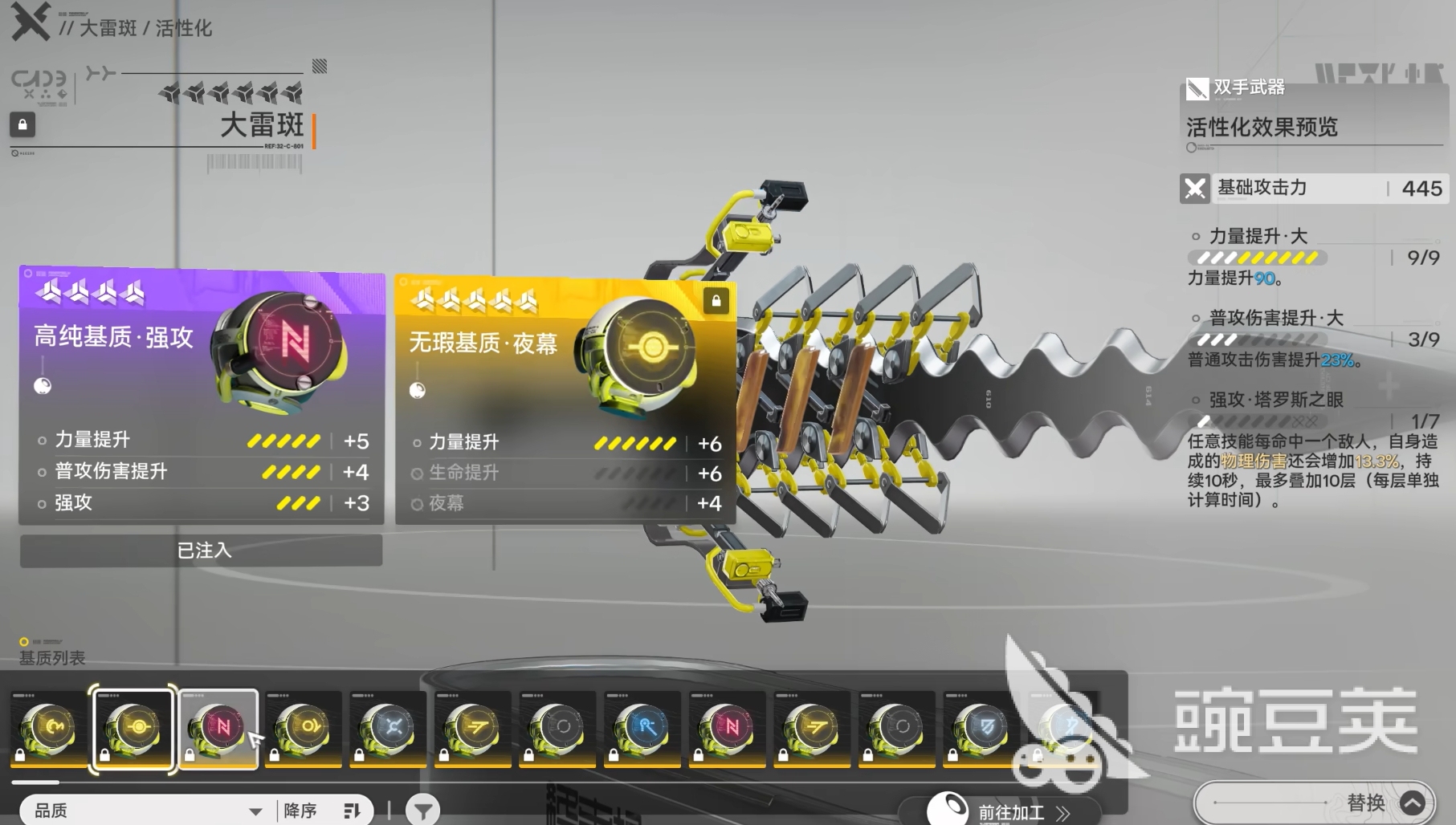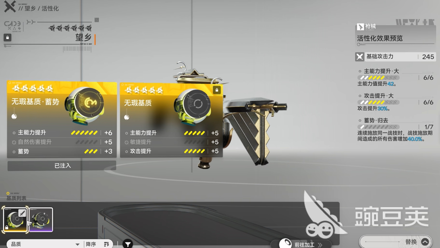 每类基质都有一个效果词条范围,且效果加成等级也会在一定数值范围内浮动,一旦刷出后,效果词条的类型和加成等级都会直接固定,所以玩家们在为武器挑选基质时,最好选那些词条效果与武器副属性一致的基质来进行搭配,让武器的每一条副词条都能获得强化。此外,武器副属性词条都有一个最大效果等级,不管基质带来的效果加成等级有多高,搭配后都不会让副词条的效果超过武器设定好的最大效果等级,这也意味着玩家们在进行武器培养时,让一把武器毕业的标准就是将它的等级提升至最高,同时也要保证它所有副属性词条的效果等级在基质的帮助下都能达到最大值。