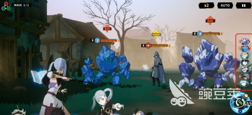 战斗中最需要注意的就是右侧的行动条,根据角色的速度和技能效果来抢占先手。如果你能合理选择属性克制攻击敌人,打出的伤害会高很多。比如风属性克土,土属性克水,合理选择能打出更高的输出。战斗的节奏也很重要,时刻注意敌人的技能释放时机,适时使用控制技能,保证不被敌人反击。