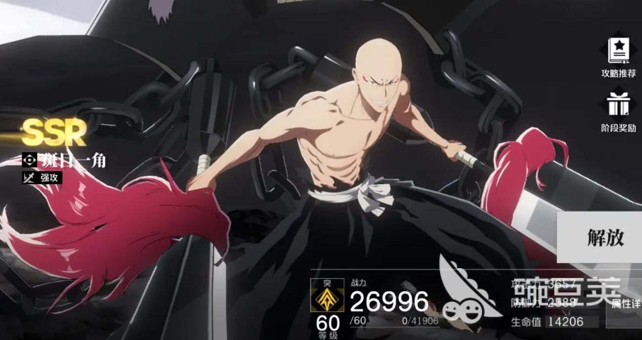 卍解黑崎一护是游戏当中的单体爆发T0角色,在boss战斗期间,可以使用卍解技能,对敌方施加压力,虽然aoe能力不足,带其单体作战方面,就算是前期,也有极强的发挥。