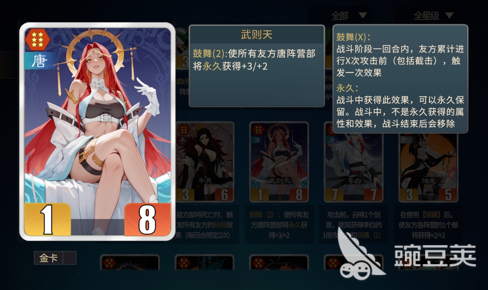 那么武则天究竟强在哪里?关键在于她的“鼓舞”技能机制。该技能能够持续提升所有大唐阵营单位的战斗属性,形成越战越强的正向循环。这种增益效果会随着战斗时间推移不断叠加,如同雪球般越滚越大,使得我方整体战斗力远超对手。因此,在使用武则天时,应优先考虑将她升至金卡品质或增加同名卡牌数量,以确保其辅助能力稳定释放。
