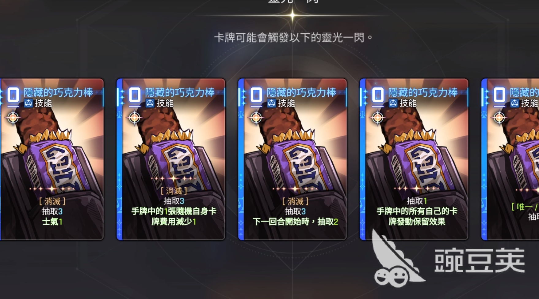 技能3隐藏的巧克力棒,不需要消耗行动点,技能类型为消灭,效果是可以抽取3张卡牌。