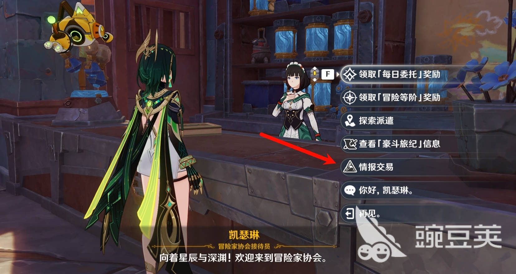 情报交易是专属于秘闻馆势力角色的一种大世界交互体验,目前该势力中已上线的角色只有奈芙尔一位。玩家们可在奈芙尔已处于队伍中时,前往挪德卡莱的凯瑟琳处,与她对话找到情报交易选项,随即就能打开情报交易的相关面板。若是在队伍不包含奈芙尔的情况下选择此选项,会出现只有秘闻馆角色才能打开该功能的提醒。