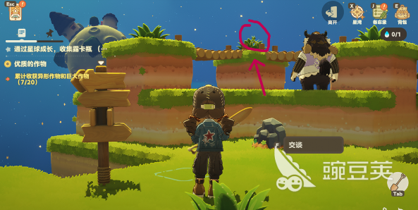 作为新玩家,在刚刚进入到游戏时,那背包肯定就是空的。进度条就会提醒大家,必须要选择多探索多收集。打开备忘录之后就可以看到累计收获异型作物要达到20个,这就意味着接下来的一段时间内,除了需要捕捉昆虫之外,还需要去捕捉一些特殊的物品。玩家在进入游戏的交汇处,看到这一个地方并没有明确的任务指引,但是这里就隐藏着一些小惊喜。除了那只正在不停徘徊的螳螂之外,偶尔还可以遇到一些可以交谈的npc。