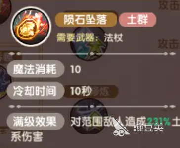 在达到二转之后,还可以解锁一个修炼技能,可以根据自身元素需求来附加一定的伤害增益效果,群体的攻击手段也会更多一些,这个效果的话,在目前的日常挂机以及清怪效率当中也是最高的,而且它上面修炼的效果可以增电伤,也就是提高电系魔法35%的伤害,如果是陨石坠落这个技能的话带来的则是土群的伤害,对范围之内的敌人都会造成231%的土系伤害,当然其中一般搭配的武器都是法杖这个能力,如果大家选择魔导师职业要对应高阶元素魔法的话,那么元素身上这个分支会更适合大家去进行转职。