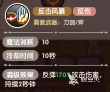 首先如果大家初期选择只是战士这个职业的话,那么在转职里面可以选择的分支是骑士,骑士的武器效果一般选择使用的就是双手剑或者是单手剑类武器,搭配可以用盾牌,那么这里其实它技能上面有一个特殊的技能叫做反击风暴,可以带来反弹的效果,一次性就可以带来170%的反弹攻击伤害,而且在被敌方秒杀的时候,依然能够反弹,这样的伤害,这里反弹的数值绝对不会超过对面血量上面。