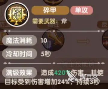 其实在后期2转之后,骑士也会根据不同的武器专精来走两个不同的方向,这里如果是斧分支的话,可以利用团队的效果带来核心能力,这里要用斧头分队的话,碎甲的技能就比较关键,这个技能可以在造成伤害的同时给目标带来一定的硬伤叠加,而且效果是可以进行共享的,所以团队的总输出可以利用这个分支来进行提升,如果走的是剑分支的话,那么这里就要注意放弃一部分的防御数值,才能够将自己的攻击提升到最好,能够打出不亚于其他输出职业的高频伤害效果。