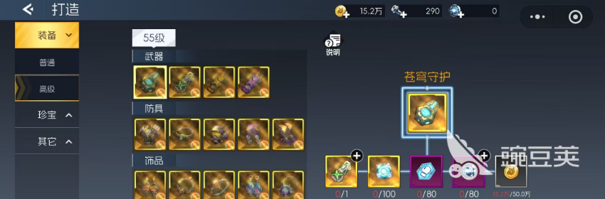 首先,打造系统的解锁是从玩家等级20级开始的,到时候,你就能在界面右下角找到变强的按钮。点开之后,你会看到很多选项,其中打造和改造是不同的,不要弄错了。打造分为三个主要部分,装备、珍宝和其他。我们先说装备打造。装备打造可以让你强化武器、防具和饰品这些东西。普通的打造,基本上需要的是一些常见的材料,玩家在日常活动中就能得到这些东西。但如果你想进行更高等级的打造,就需要一些特殊的材料,比如天空之源、始源龙骸,或者在遗迹宝库掉落的精粹钢。这些材料是打造高级装备的关键。