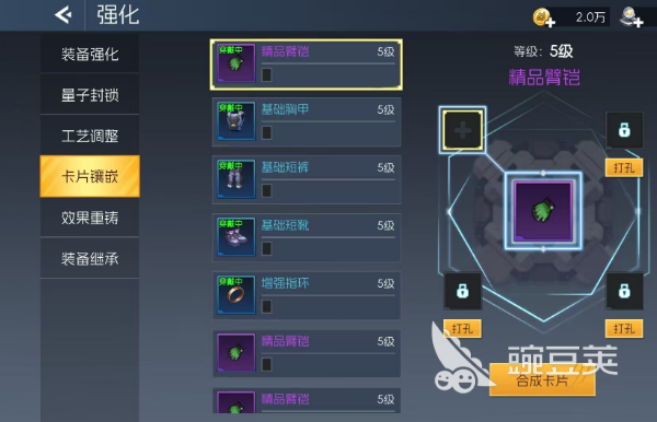 再来说一下卡片,卡片的作用也是提升暴击率的一部分,很多装备都可以镶嵌暴击卡,像武器和手套这些位置,镶嵌暴击卡之后,伤害可不小。特别是黄帽的手套,镶嵌暴击卡后,不仅能提升暴击率,还能让连招伤害翻倍,这样打起来就更加顺畅。卡牌合成方面,建议大家先攒一些粉色的暴击卡,两张合成后消耗会更低,接着再用两张粉卡合成一张金卡,金卡的暴击效果非常明显,带上以后暴击率直接上升。而且如果搭配定向合成器,做出金色暴击卡,效果更是翻倍,暴击率蹭蹭上涨。