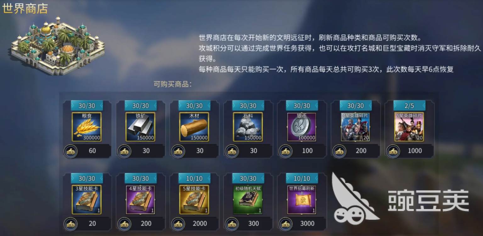 以上就是《英雄之城3》世界商店的兑换指南。需要注意的是,所有商品均有每日刷新机制及购买次数限制,建议玩家们密切关注商店更新动态,一旦出现高价值物品应及时兑换,以免错失良机。