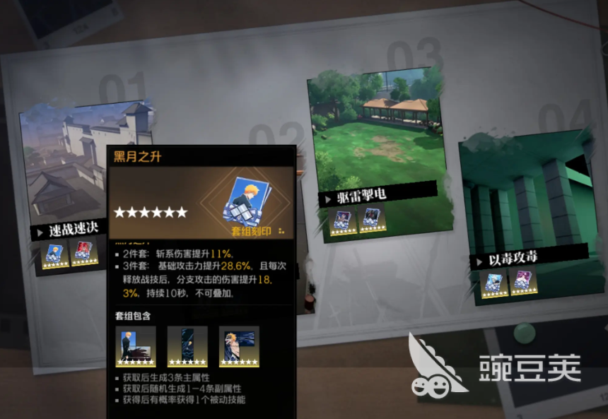若暂时无法凑齐四件套,使用两件“黑月之生”搭配其他散件也是可行方案。需注意的是,三件同属性套装并不会激活额外加成,因此不推荐强行堆叠。剩余部位可选择单件“黑月之声”或其他提供暴击率加成的装备,以保证输出稳定性。