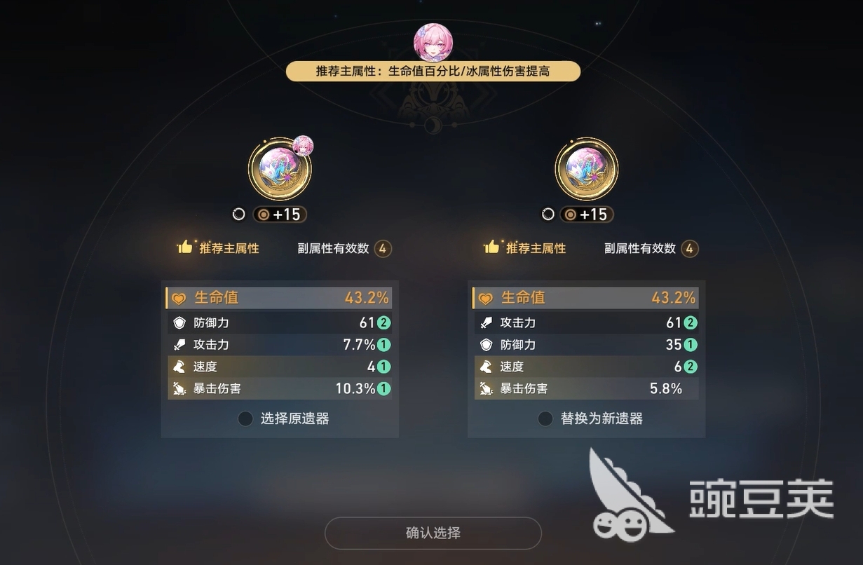 若玩家们在150张卡消耗完之前就已经集齐了套装,可继续抽取新的遗器部件,游戏也会在完成重复抽取同部件遗器时,给出新旧遗器的对比,并为玩家们贴心地标注遗器的主词条是否符合所选定角色的需求,以及新旧遗器的副词条里有多少条角色能用的有效词条,玩家可通过替换的方式,让属性更好的新遗器代替旧遗器,也可在新遗器比如旧遗器的情况下,选择保留旧遗器而放弃新遗器。通过这样的形式,玩家们共计能通过奇库寻迹玩法获得六件不用花费任何成本的加15遗器,并且在不断筛选下,它们的主副词条都会十分优秀。