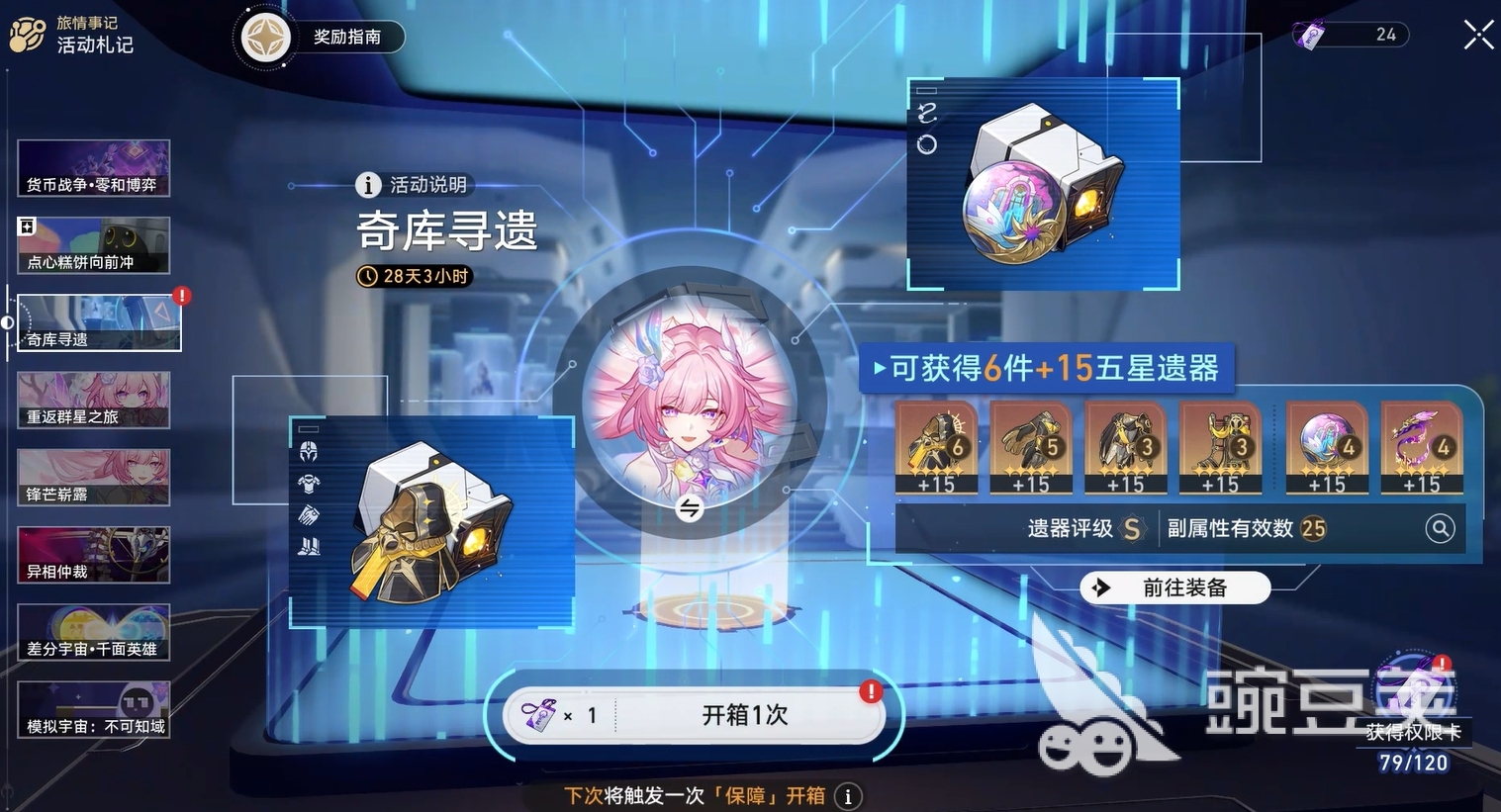 奇库寻迹可在活动页面里找到,进入该玩法后玩家先选择想要进行遗器搭配的角色,再为角色挑选游戏已有的任何一套外圈四件套和内圈两件套,总共六件,随即便能抽取指定套装的加15遗器了。抽取出来的遗器有着随机性,不管是部位还是它们的主副属性都会随机生成,但必定能保证玩家能拿到一套完整的遗器套装。抽取时会消耗权限卡,共有150张,可通过游戏内的各类活动来进行获取,很好拿完,但要注意待150张卡都消耗完后,玩家将无法再进行遗器的抽取。