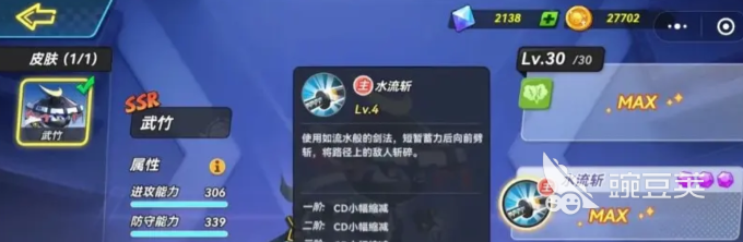 他的普通攻击还会直接分成三段,在进入到第3段时就可以把对手直接击退。当然将对方击退的同时,还会有一个小范围的突刺,就能狠狠的揍对方一下。还有一个叫做水流斩的主动技能,用着很帅的剑法,就可以将对手直接摁在地上。关键的是对手在被打倒的时候手上还会拿着球,这球就会直接掉落在地上,玩家就可以趁机去抢球。一旦抢到之后那就可以获得分数,所以在这个游戏中他真的还是很有优势的。
