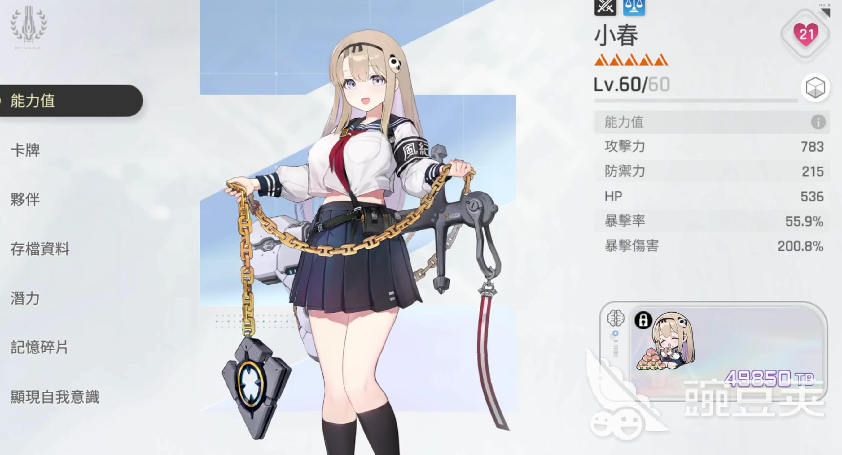 小春是一名典型的两费暴击型输出角色。其核心输出技能“锚炮”为两费卡牌,因此非常适合搭配正义的射线套装。该套装四件套效果可使费用大于等于2的卡牌暴击率提升20%,与小春的主力输出完美契合。配合她自身暴击后回手的灵光机制,高暴击率能极大提升循环流畅度。二件套推荐执行者的道具,提供25%暴击伤害加成,进一步放大暴击收益。整体搭配逻辑清晰:提高暴击触发频率,增强暴击伤害,减少卡手情况,加快推图节奏。