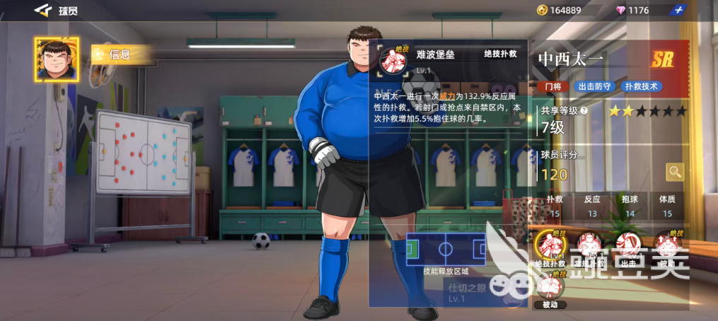 技能效果当中难波堡垒这个技能作为他的基础绝技,可以让他有足够的扑救能力,使用这个技能的时候中西太一会进行一次威力百分比达到132.9%的反应动作,他此时根据自己的属性会做出一个扑救的动作,其中的补救成功百分比后期也可以瘦到影响,此时如果是射闪或者是抢点动作来自于禁区内的球员,那么中西太一本次的扑救动作还会增加5.5%的成功几率,这个效果就是增加的他成功抱住球的几率。
